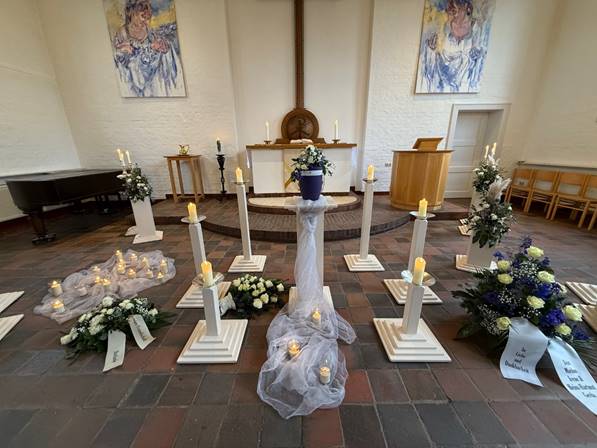 Und so geben wir Nicole Schröder heute in Gottes Hand. Wo unsere Hände loslassen, sind Gottes Hände da. Er ist da für Nicole und er ist auch da für uns, die wir nun zurückbleiben. Gott ist da in unserer Trauer, in unserem Abschied und wenn wir aneinander denken. Er ist auch da auf den neuen Wegen, die wir nun gehen.