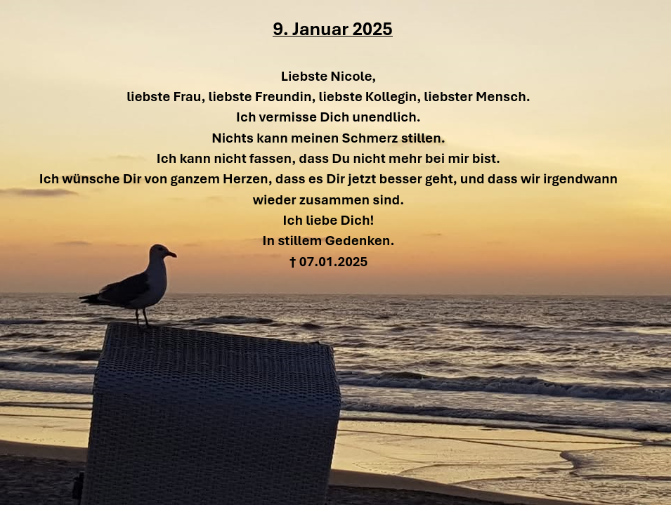 Es war so einfach, mit ihr ins Gespräch zu kommen, erzählen Sie, Herr und Frau Schröder und Sie lachten viel. Nicole war fröhlich und optimistisch. „Das kriegen wir schon hin!“ und „Wir schaffen das“, war ihr Motto, immer wenn schwierige Situationen auftauchten. Und überhaupt, wenn es um technische Probleme ging, oder um Computer und Smartphones, kannte Sie sich aus und half sofort.